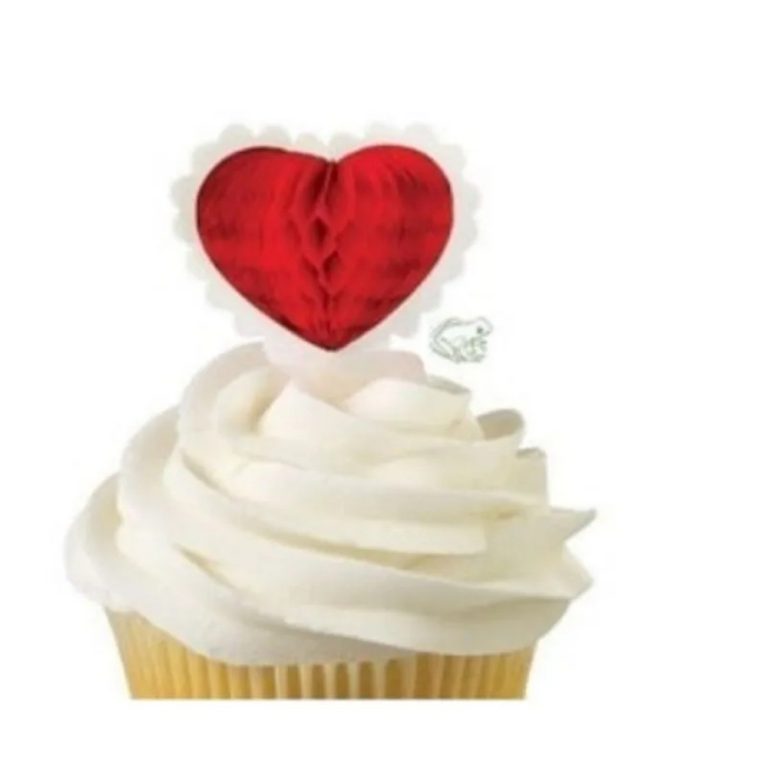Custom Honeycomb Heart Cupcake Toppers – 12 Ct Valentine Party Wholesale