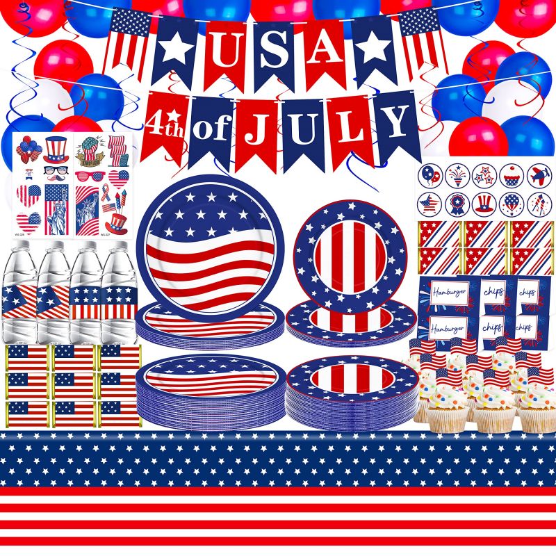 - Celebrate 4th of July in style with this all-in-one party pack! With 261 pieces,it will meet your demand to host a memorable patriotic themed gathering. Most items feature patriotic designs in red white blue, ensuring a fun and enjoyable party experience.