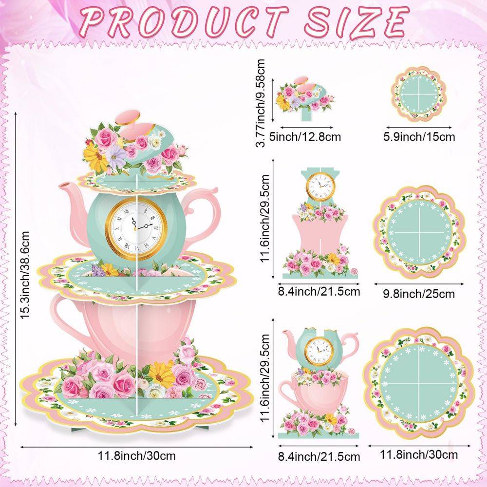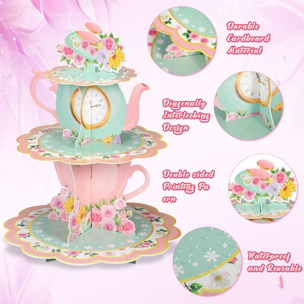 - Quality Material: vintage teapot party cupcake tower party decorations are made of quality sturdy cardboard, sturdy and durable for holding many party desserts, using a double sided printing process, waterproof and reusable, which adds an active atmosphere for your floral tea party, you can also match it with other decorations