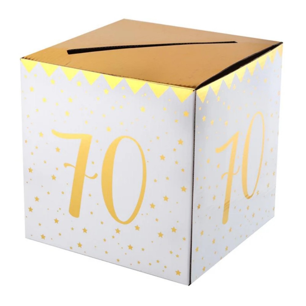 70th Birthday White & Gold Sparkle Card Boxes Factory