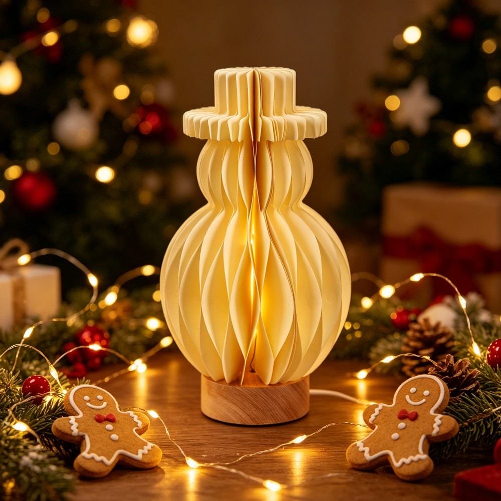 This 30cm snowman honeycomb paper lamp is a whimsical, eco-friendly lighting solution designed for bulk commercial orders. Crafted from premium tear-resistant paper in a dimensional snowman silhouette (with classic top hat detail), it casts a soft, warm glow from built-in LED lights.