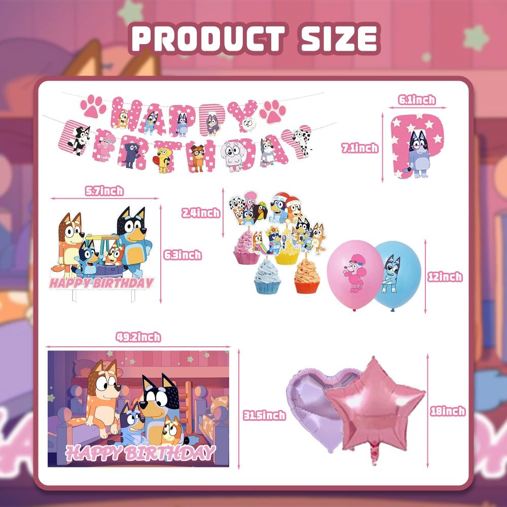 Birthday Party Supplies Pink Bluey Party Decorations Party Set for Girls