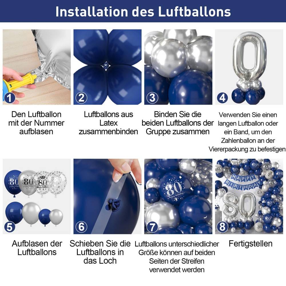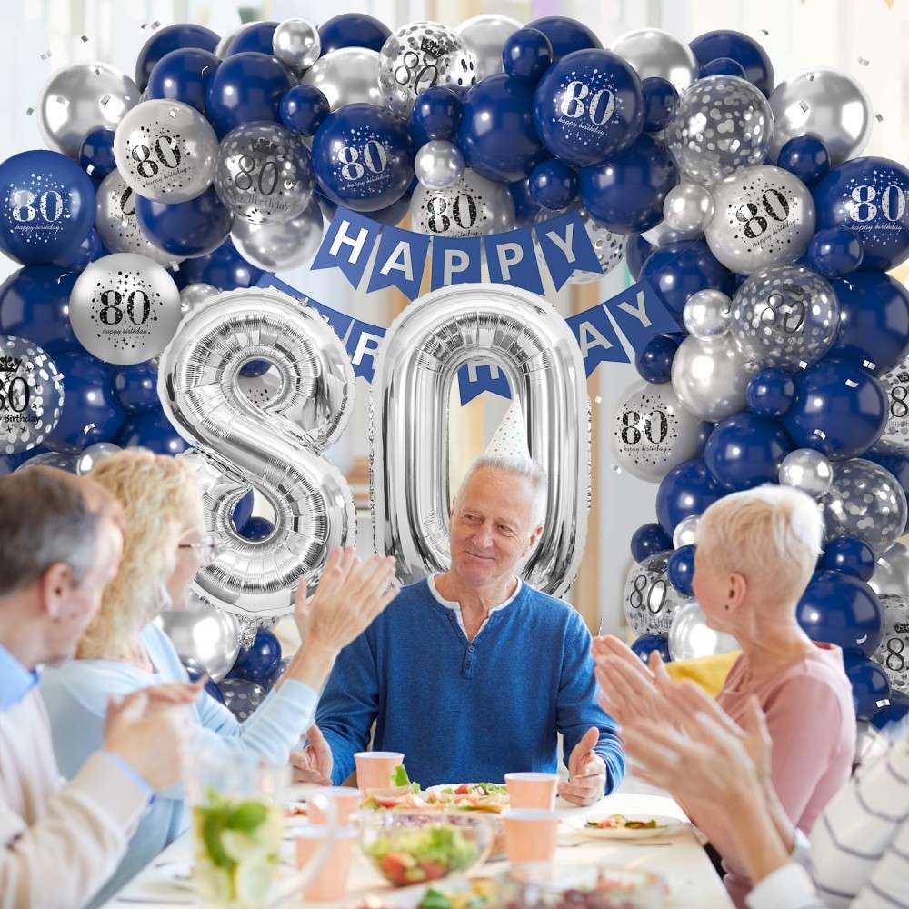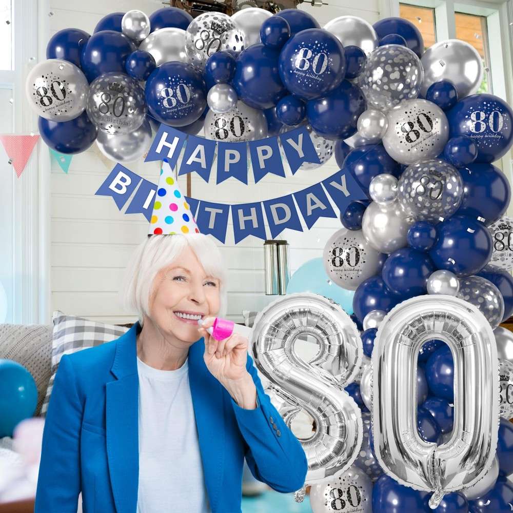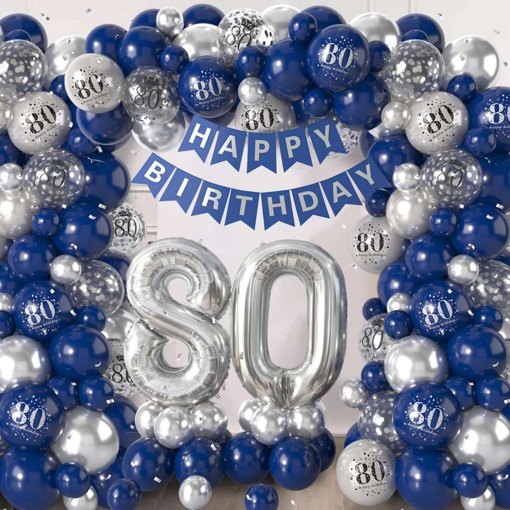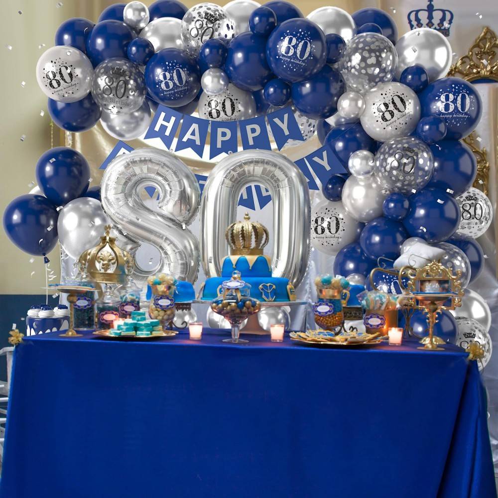 Blue Silver 80th Birthday Balloon Garland Party Decorations Wholesale Factory