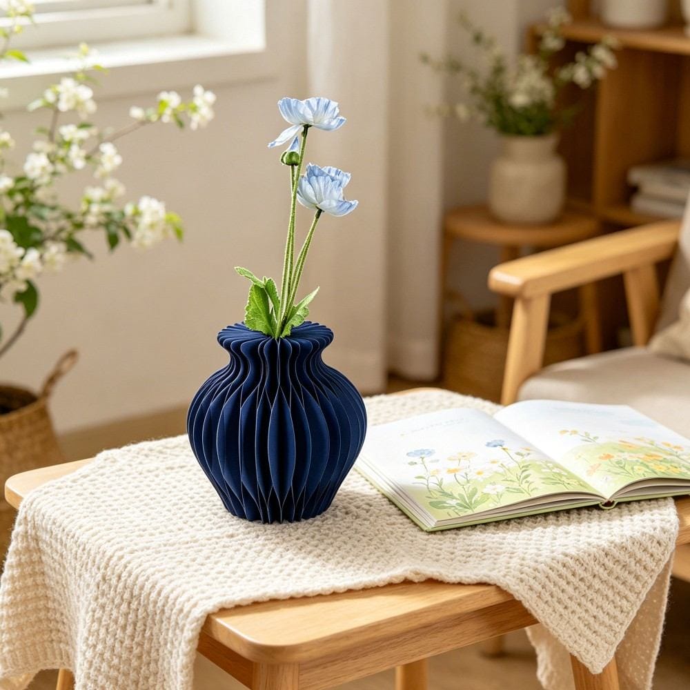 | Product Name | 20cm Navy Origami Pleated Paper Vase / Foldable Minimalist Home Decor Vase |