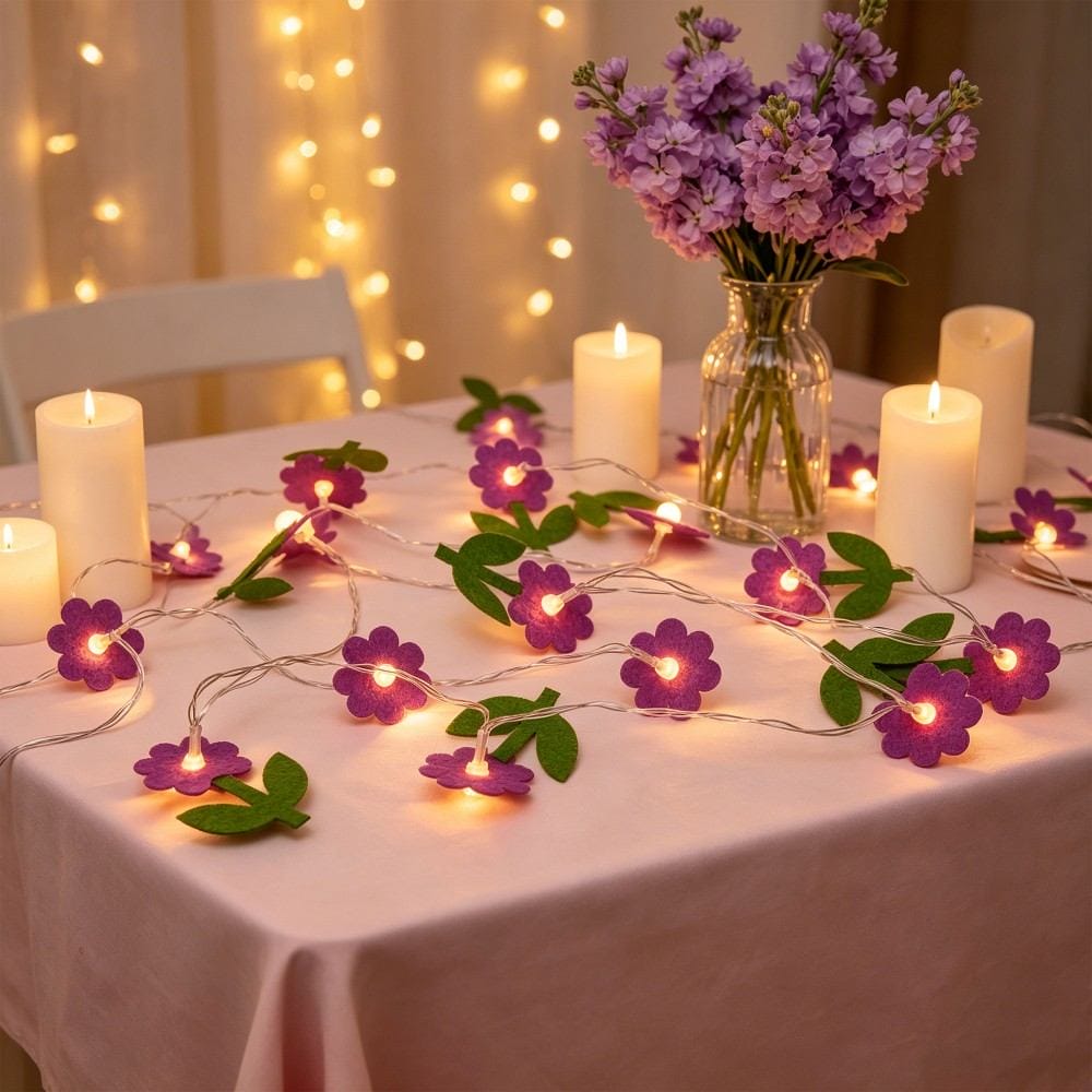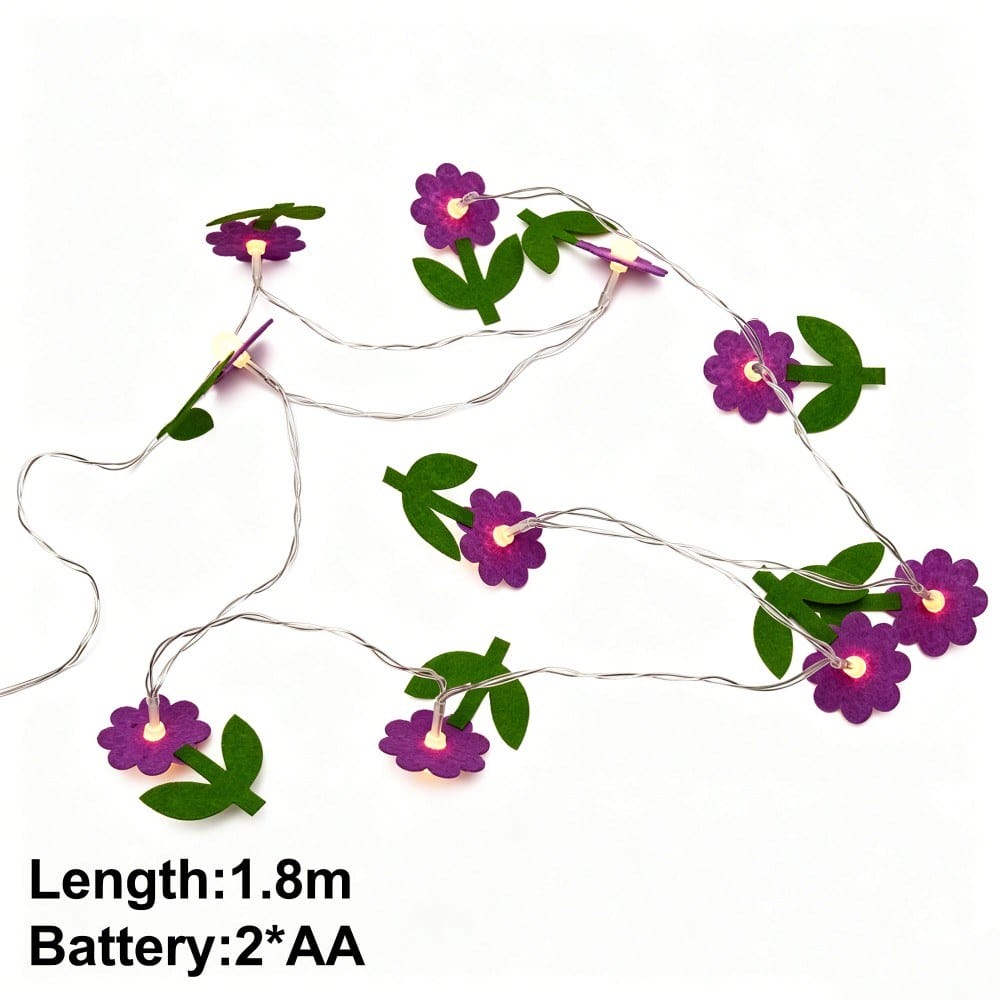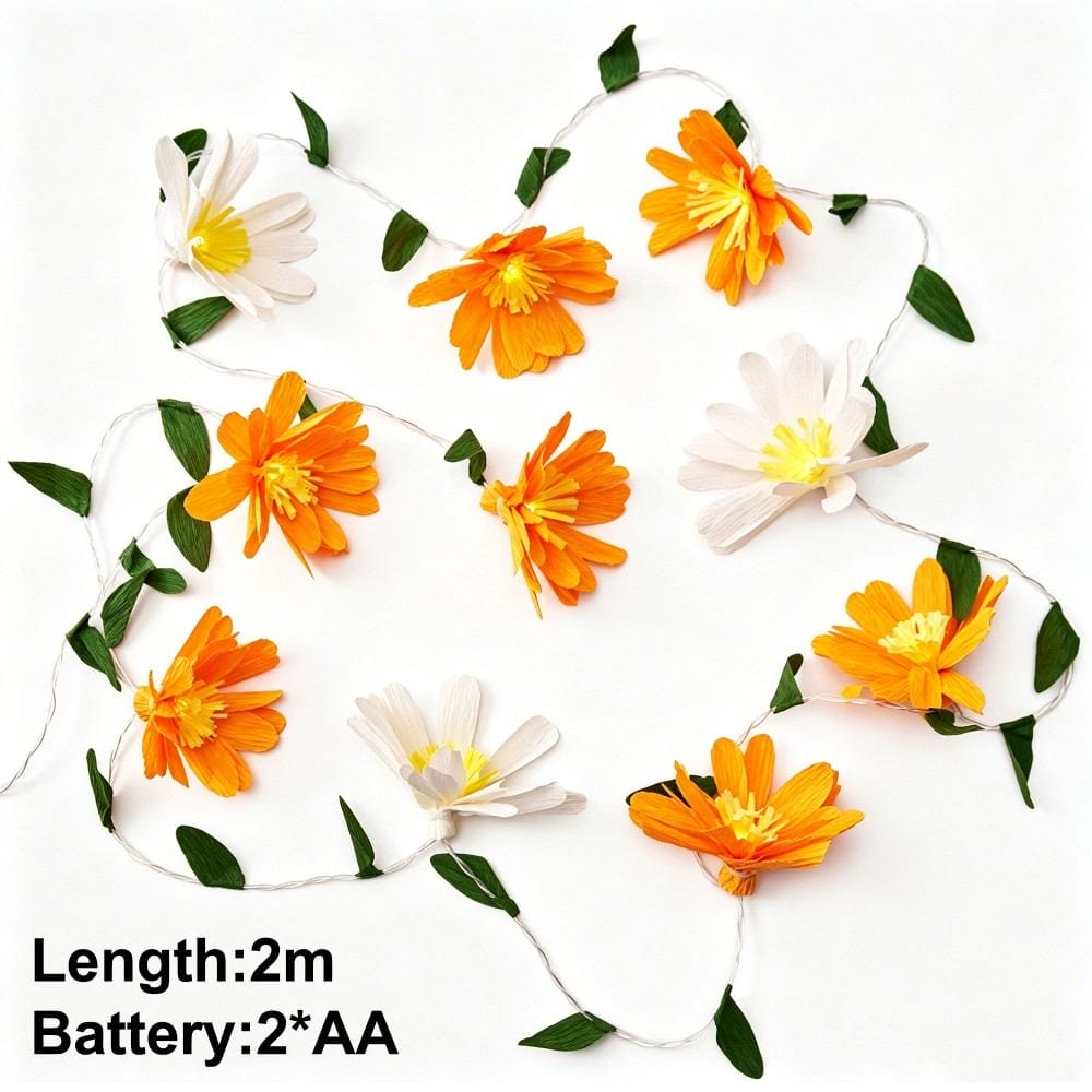 Available in three styles (orange/white paper flowers, yellow felt flowers, purple felt flowers) and lengths (1.8m/2m), these battery-operated string lights are powered by 2×AA batteries for flexible placement. The lightweight, ready-to-use design reduces logistics costs for wholesale buyers, making them perfect for party supply retailers, event planners, hospitality brands, and gift shops. We support OEM/ODM customization, custom colors/designs, and flexible MOQs to align with your seasonal campaigns.