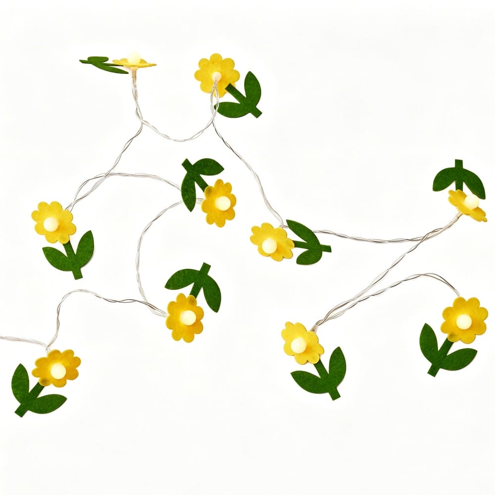 These flower-shaped LED string lights are charming, eco-friendly lighting solutions ideal for bulk commercial orders. Crafted from premium crepe paper or felt with floral and leaf details, they feature warm LED lights that create a soft, festive glow for events and home decor.