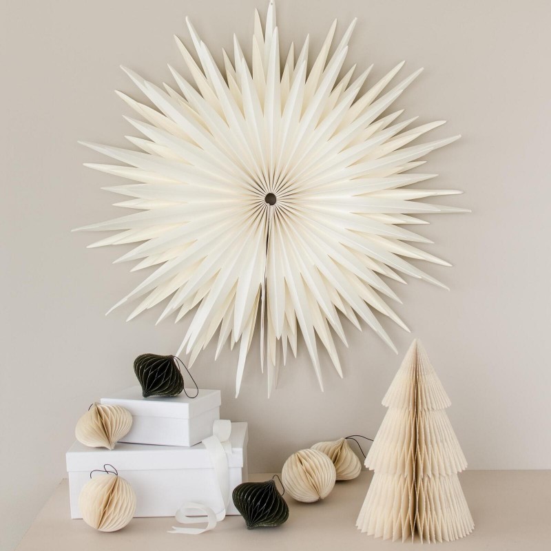 Custom FSC-certified Paper Hanging Star Ornament Off White