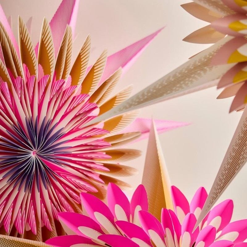 The multi-layered folded paper construction creates a stunning 3D star effect with rich depth, strong dimensionality, and substantial texture. This layered design delivers exceptional visual impact, making these paper star lights ideal for high-end retail displays, holiday lighting installations, and seasonal promotional events.