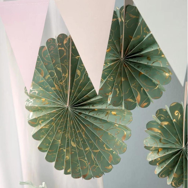 Paper fans _ Paper. 3pcs. _ Sage Green, Gold
