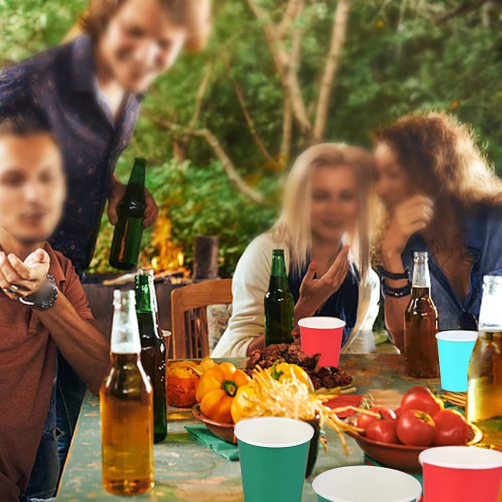 Disposable Paper Cups Party Cups 9 Ounce Multicolor Drinking Cups Biodegradable and Compostable for Party DIY