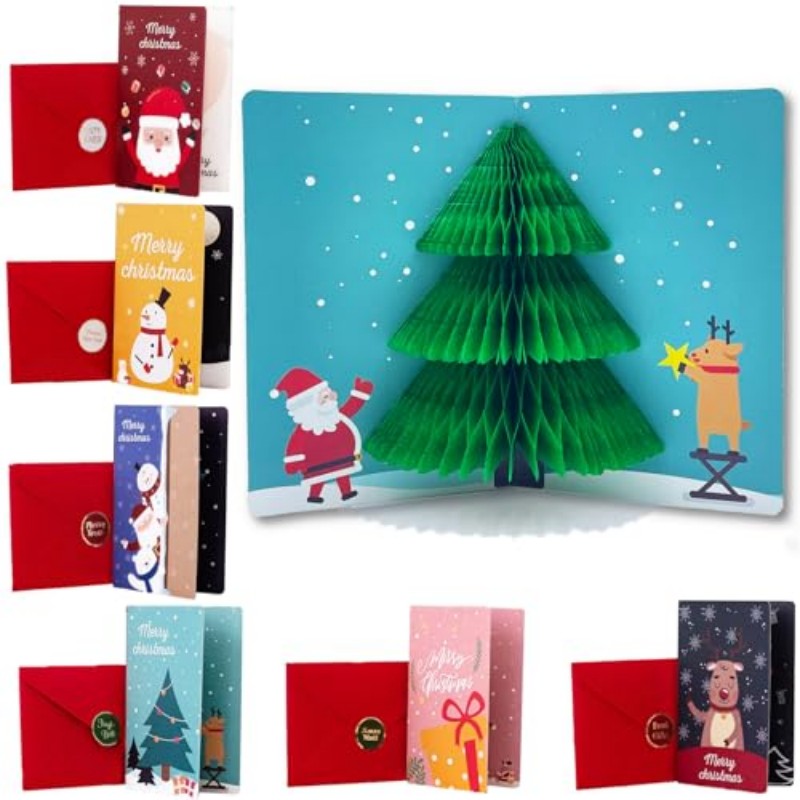 Factory Wholesale Pop Up Christmas Cards with Envelopes Sealing Stickers