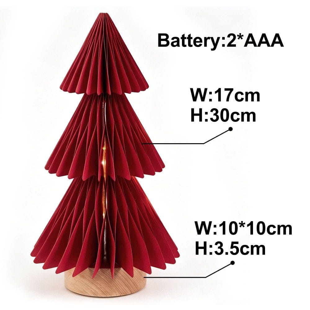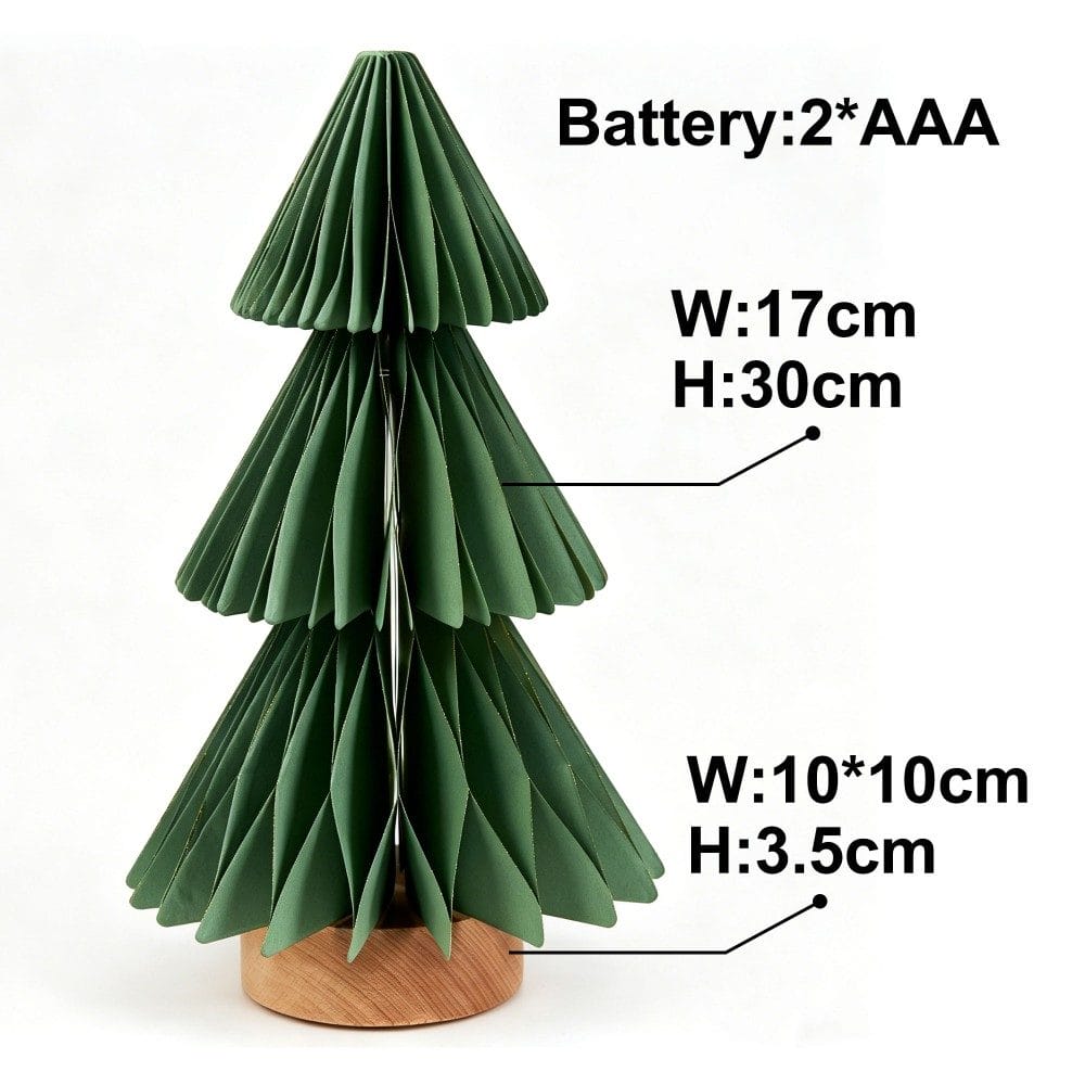 This 30cm pleated Christmas tree paper lamp is a festive, eco-friendly lighting solution designed for bulk commercial orders. Crafted from premium, durable paper with a crisp 3-tier pleated structure, it forms a dimensional evergreen silhouette that casts a warm, soft glow from built-in LED lights.