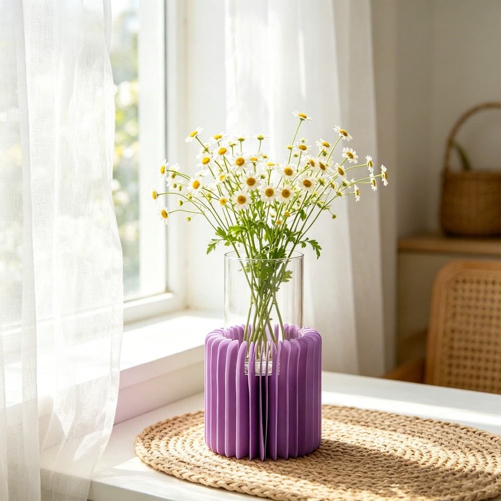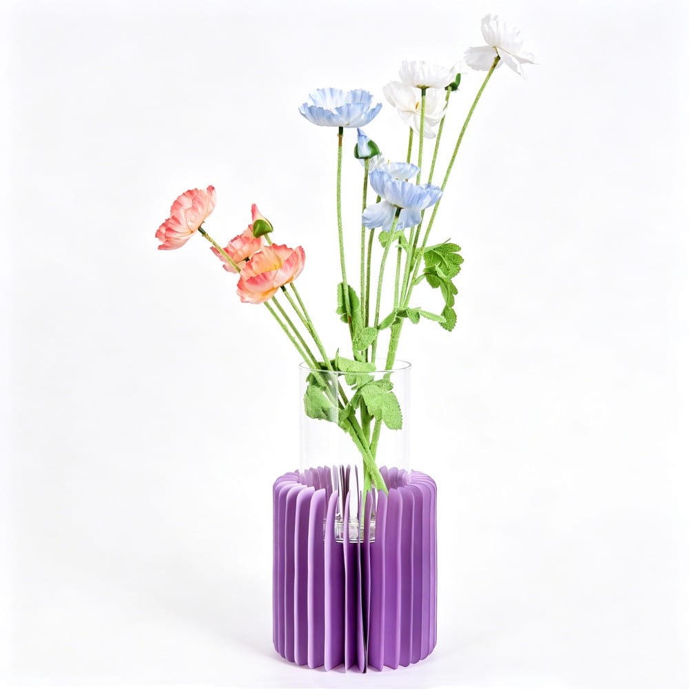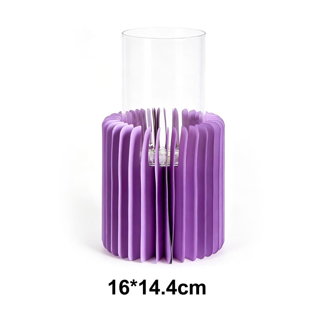 | Product Name | 16cm Purple Origami Pleated Vase Base with Glass Insert / Foldable Modern Decor Holder |