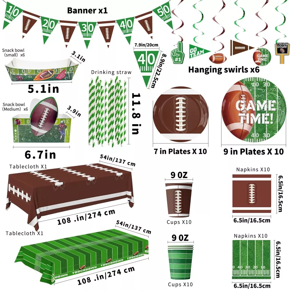 Football Party Tablecloth and Decor Set Custom Made for Gameday Events