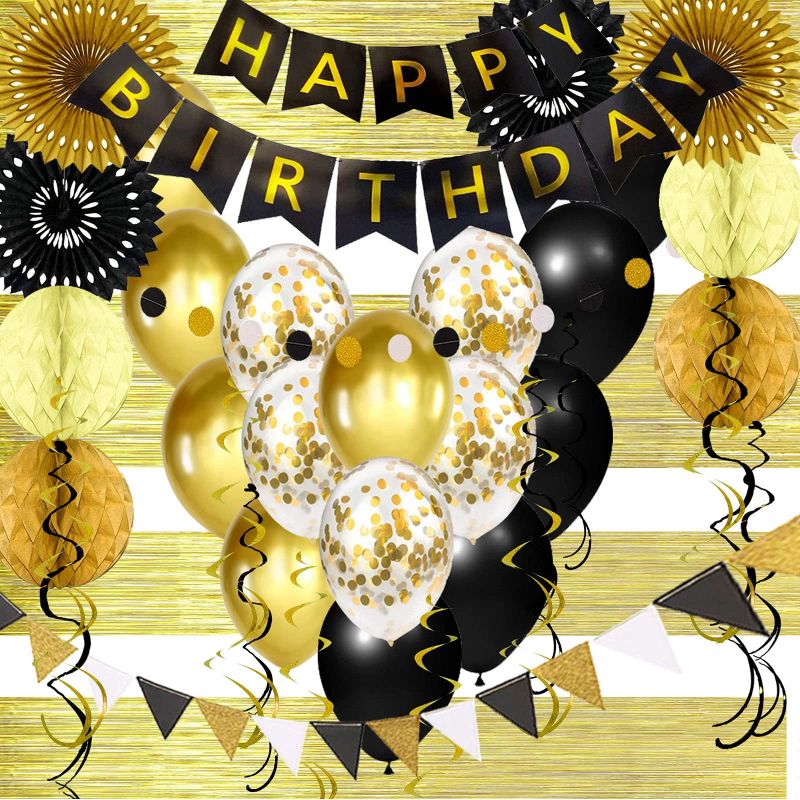 - [BLACK AND GOLD BALLOONS]: College graduation decorations and party supplies, black and gold. Ornate hanging decorations can show graduation traditions and culture, which will surely make you unforgettable!