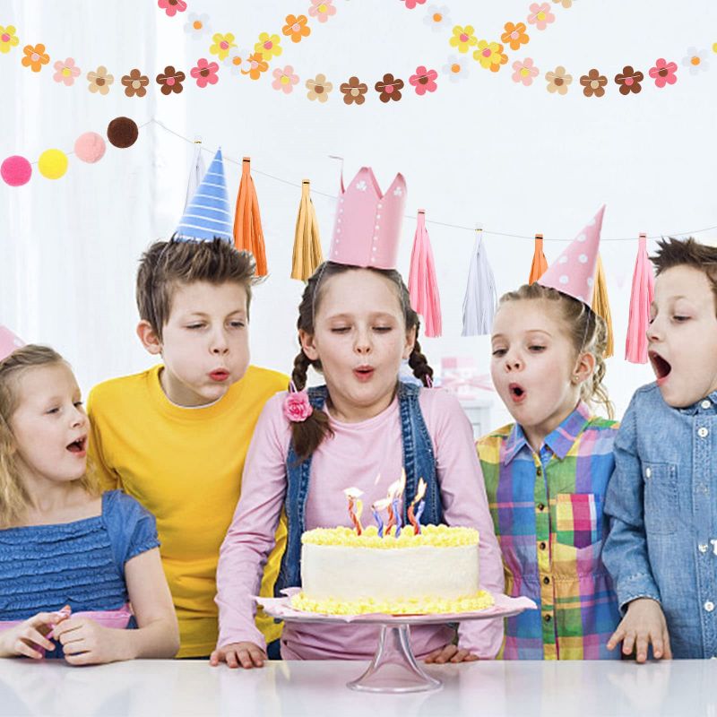 Groovy Boho Garland 3 Pieces Felt Ball Daisy Garland Party Tassel Banner Sets
