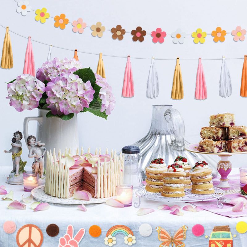 The hippie birthday party decorations are perfect for all occasions, such as groovy hippie boho themed party, hippie themed party, spring celebrations, wedding parties, baby showers, birthday parties and more