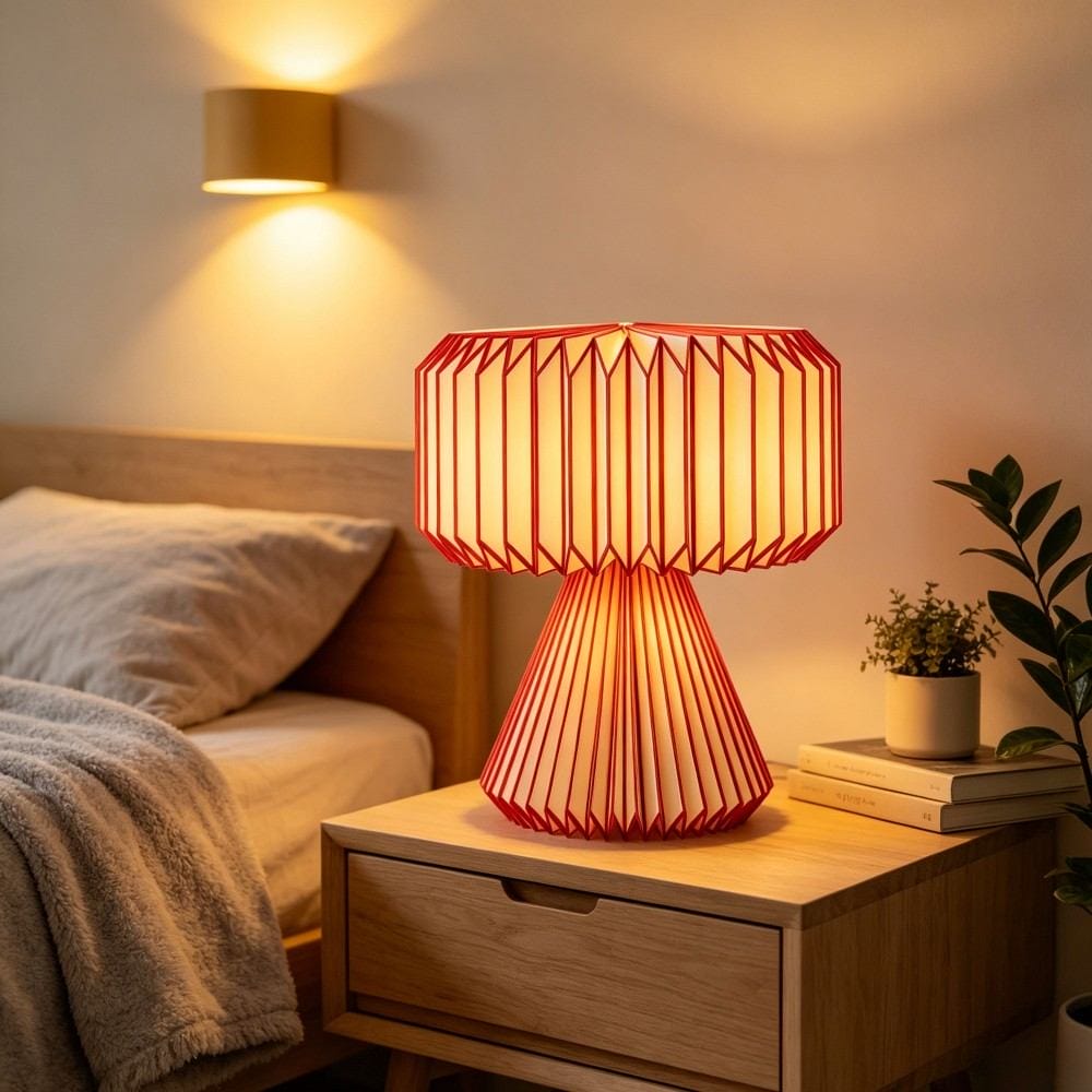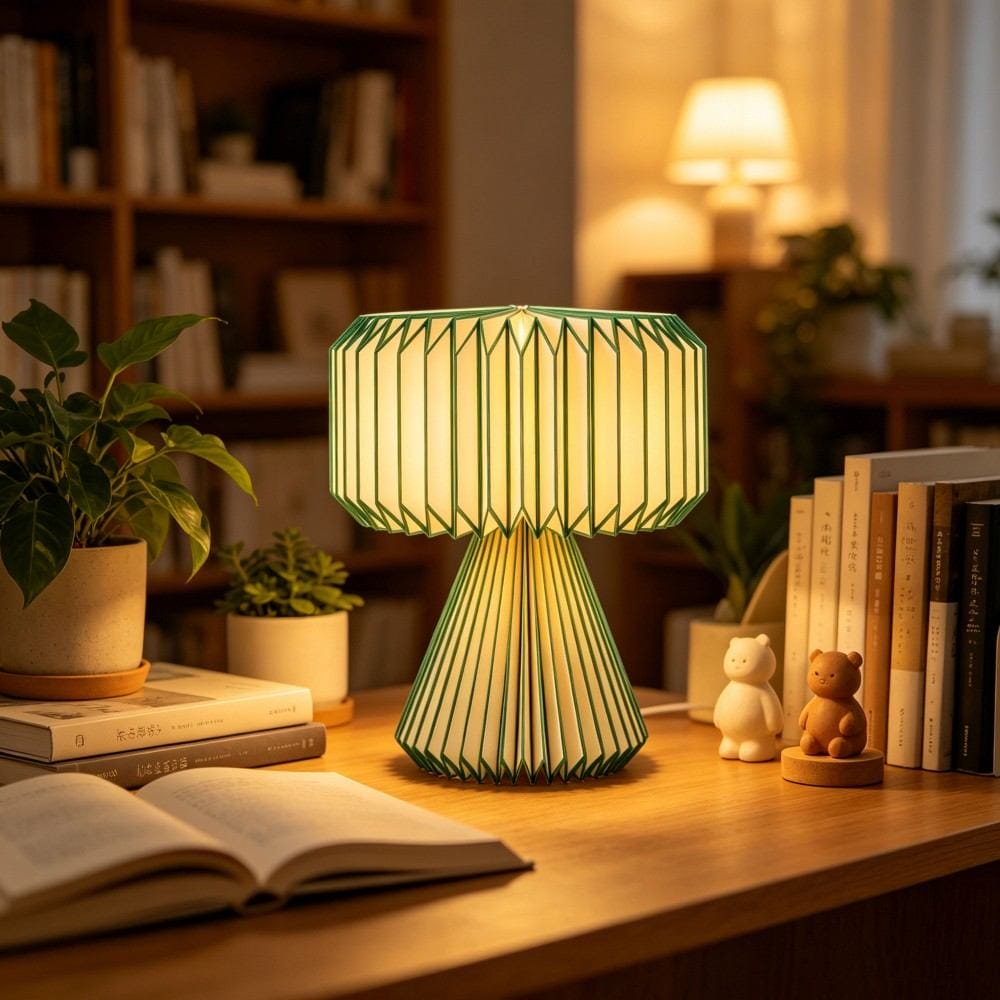 This modern pleated paper table lamp blends minimalist origami design with functional lighting, ideal for commercial bulk orders in home decor, hospitality, and retail sectors.