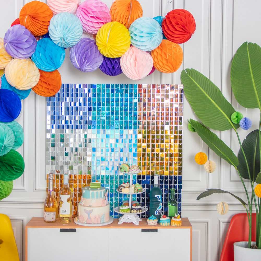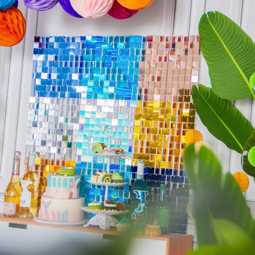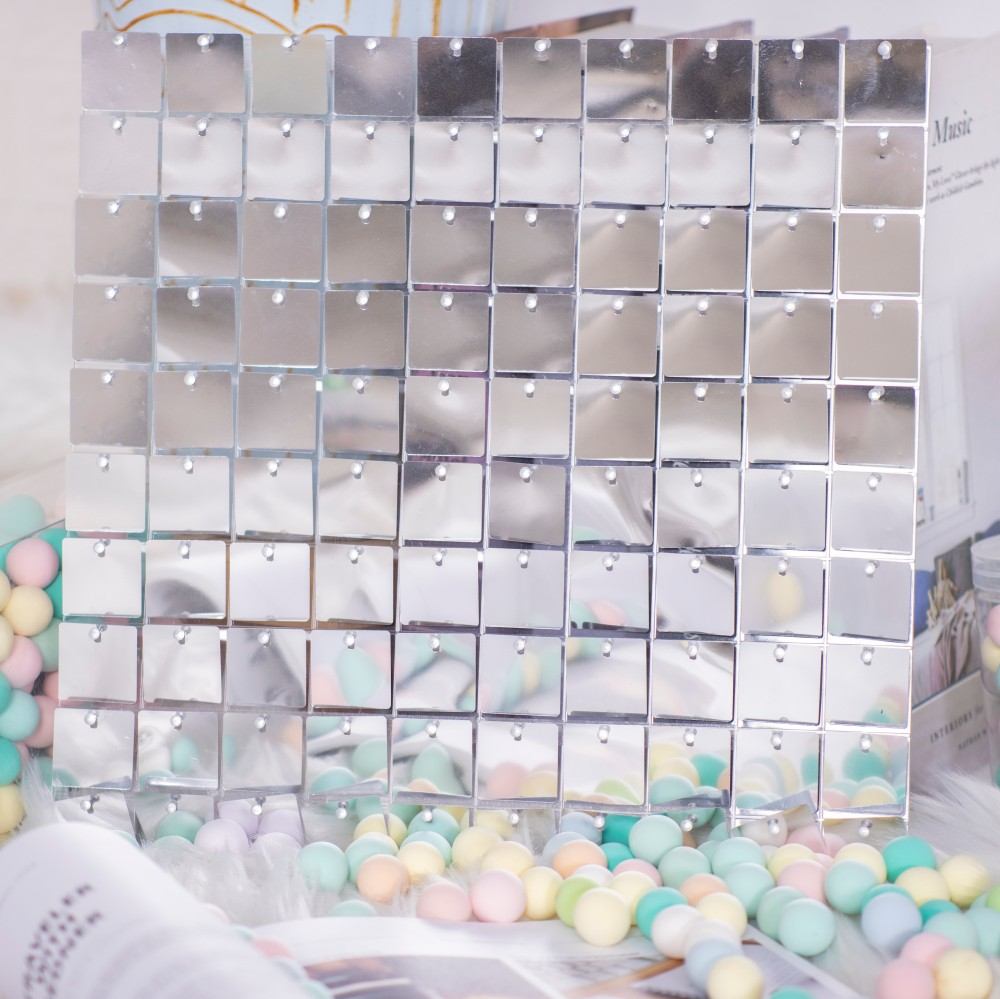 Personalised Silver Shimmer Wall Backdrop Square Sequin Shimmer Backdrop Panel