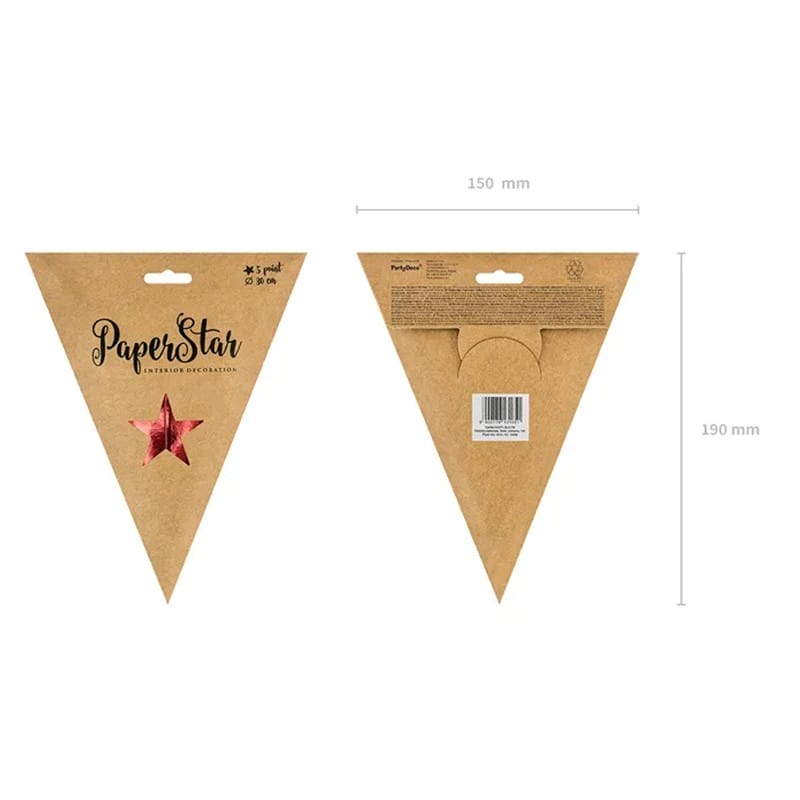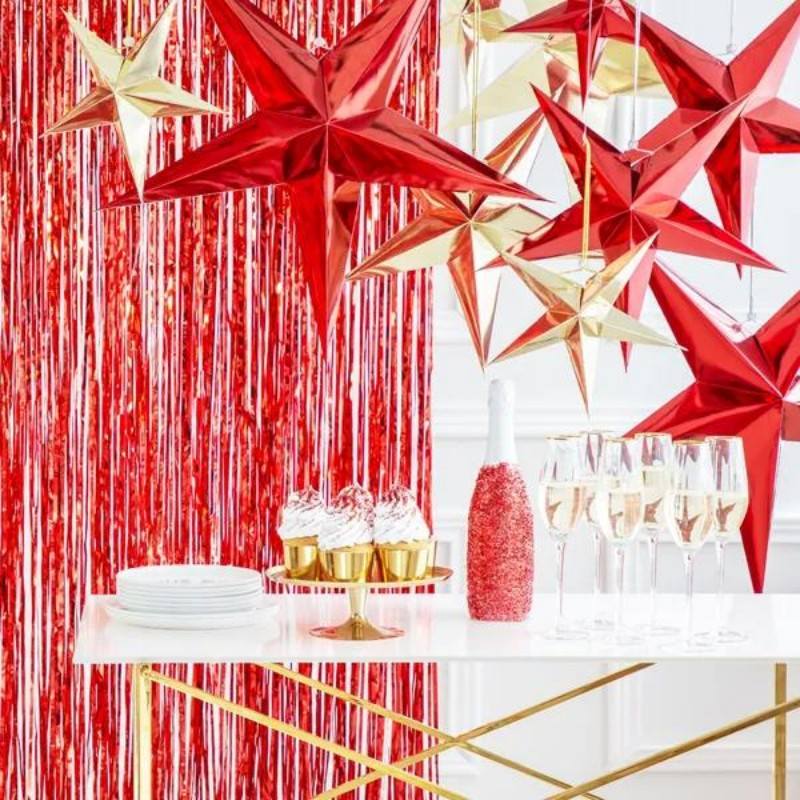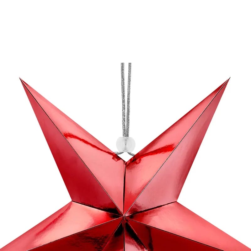 five point mirror Paper star with silver twine silver 30cm, 45cm,70cm, red