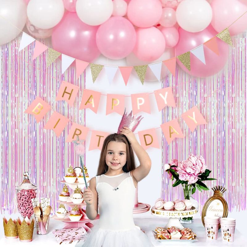• 【Easy to Install】This pink foil curtain is prepared with double-sided adhesive tape, you just need to Tear off the tape, and stick it to wherever you want, such as wall, ceilings, windows or door.