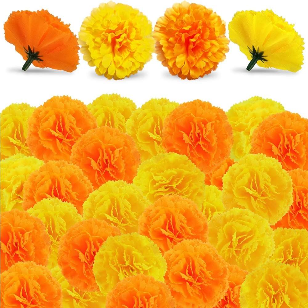 Silk Marigold Flower Heads Bulk OEM Artificial Marigold Wreath Garland Supplier